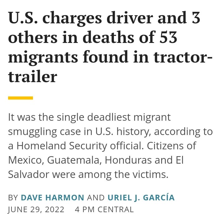 Joe Biden: [immediately after it happened] I am outraged that 50 migrants died in a tractor trailer and we will go after those responsible