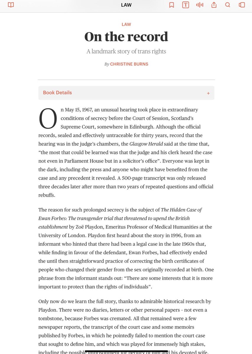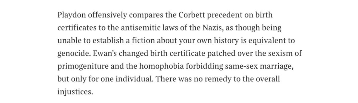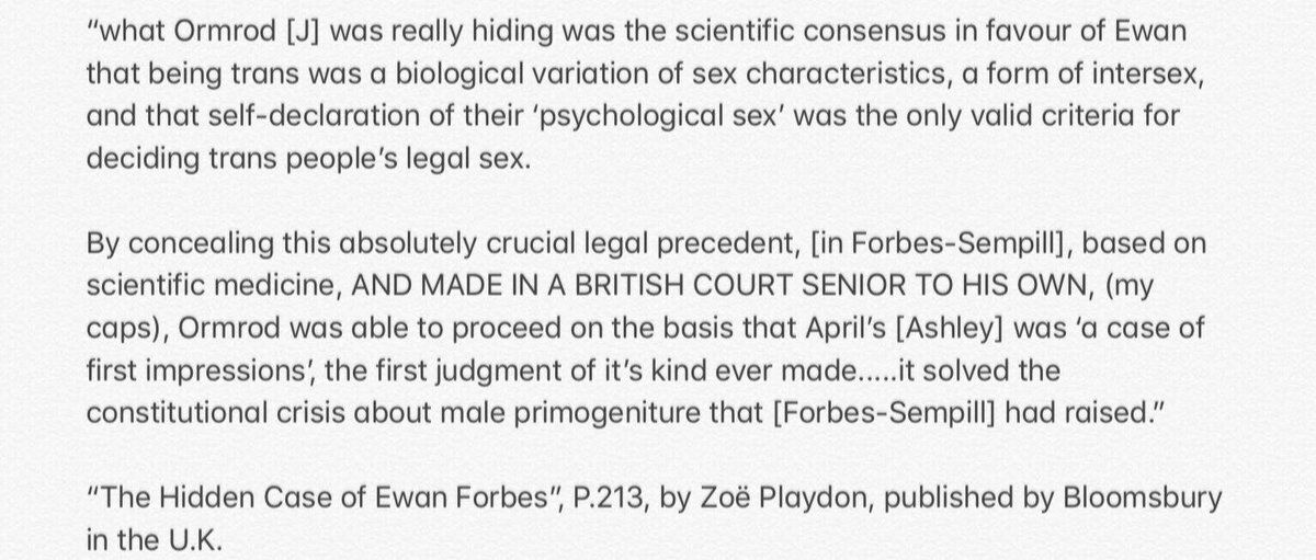 It’s now beyond doubt that substantial claims made by @zoeplaydon in “The Hidden Case of Ewan Forbes” in history, law, medicine & biology are false - fabricated claims about sex, birth certificate “correction”, the hiding of precedent & an establishment cover up. @OliverKamm 1.