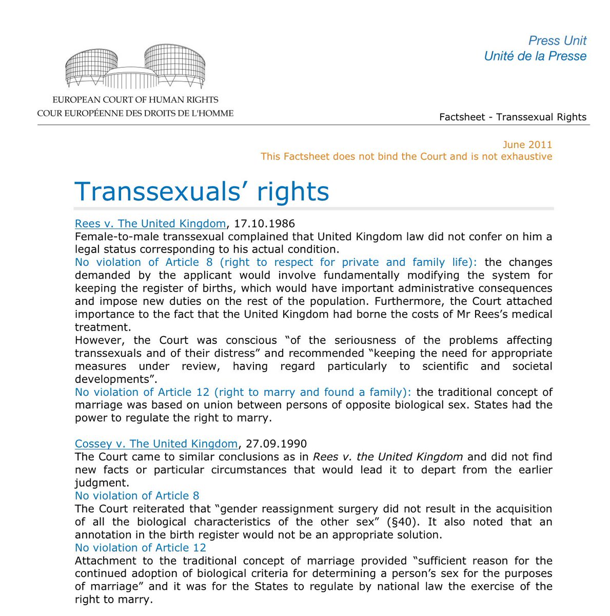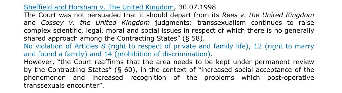 A summary of the outcomes of the cases of Rees & Cossey is provided by @ECHR_CEDH. 12.