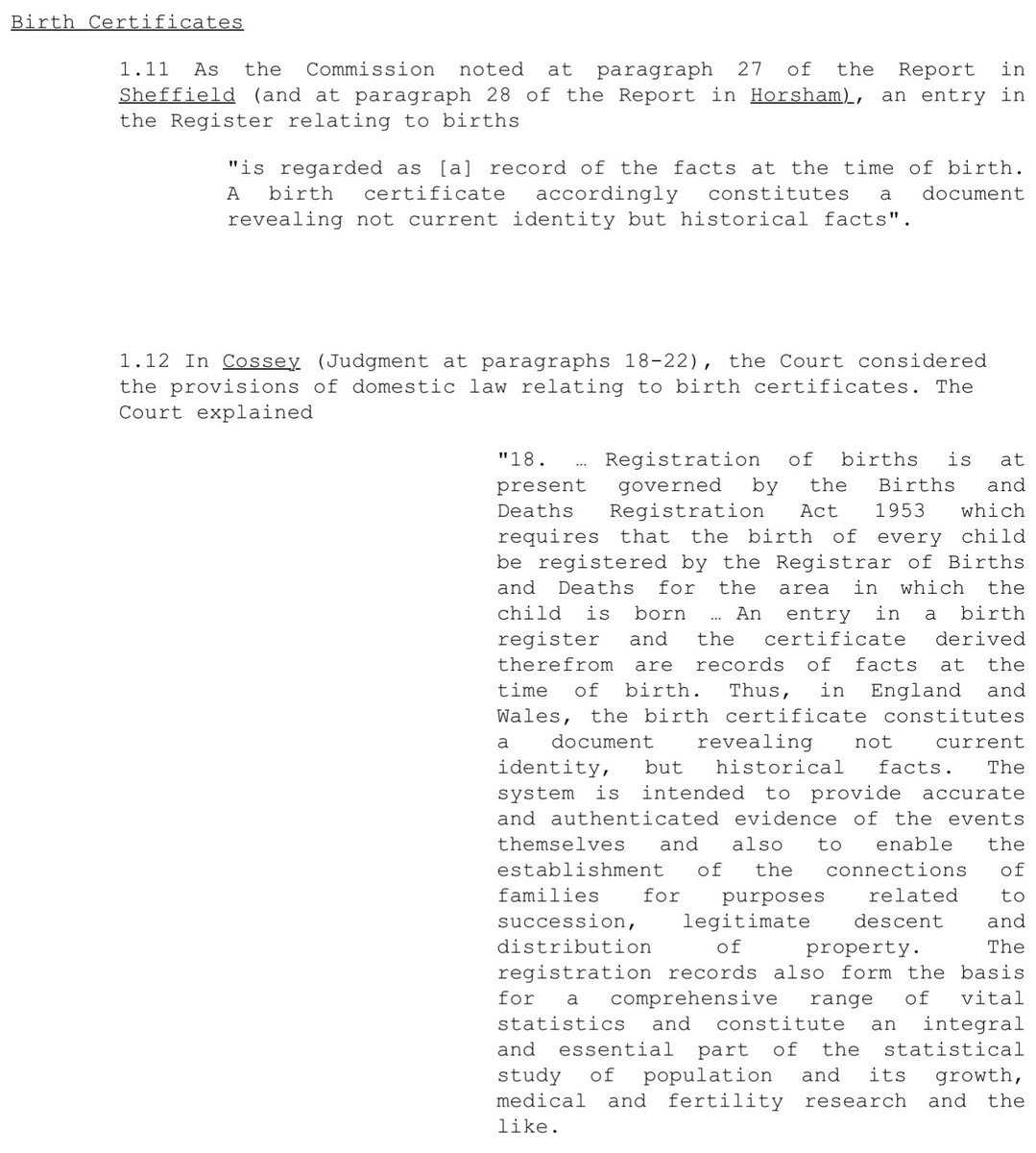 “...in England and Wales, the birth certificate constitutes a document revealing not current identity, but historical facts.” 15.