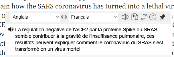 "La régulation négative de l'ACE2 par la protéine Spike du SRAS semble contribuer à la gravité de l'insuffisance pulmonaire, ces résultats peuvent expliquer comment le coronavirus du SRAS s'est transformé en un virus mortel"