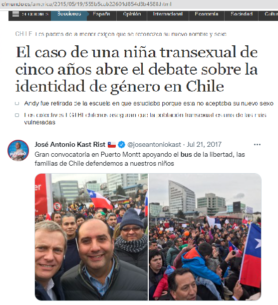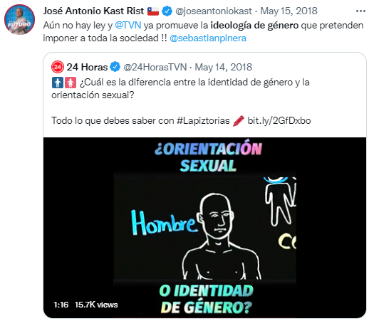 Por supuesto Kast se opuso a la ley de identidad de género y trajo un predicador "trans arrepentido" de EEUU, quien señaló que que las personas trans "padecen algún trastorno emocional, psicológico, psiquiátrico o sexual que requiere de terapias"