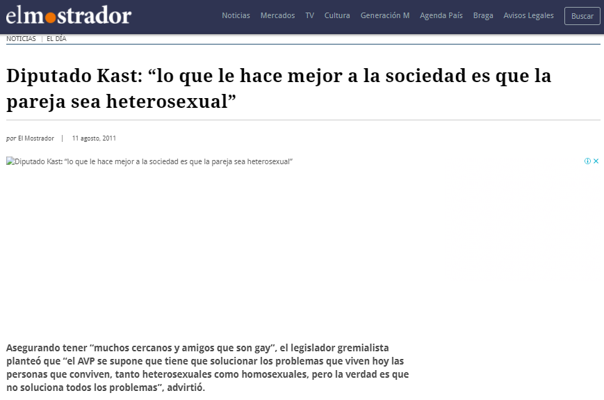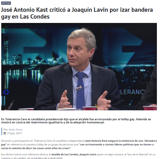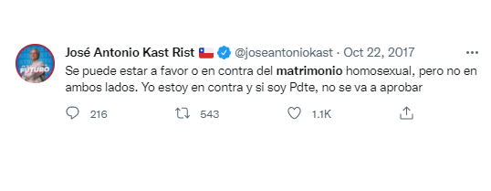 Ya en ese entonces Kast decía tener “muchos cercanos y amigos que son gay”, mientras se oponía a cualquier protección estatal para las parejas del mismo sexo.