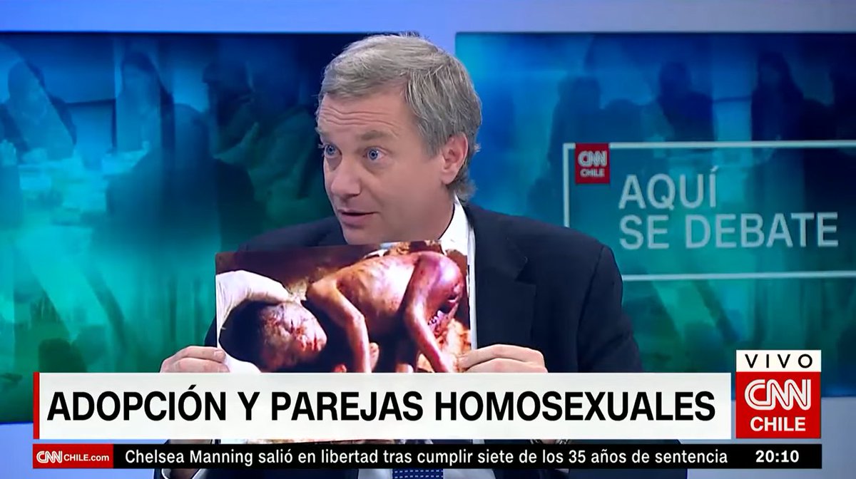 El año 2017 participaba en debates contra la marcha del #Orgullo🌈 y la adopción, donde mostraba a un padre besando a su hijo insinuando que sería pedofilia. También llevó una imagen cuyo único sentido imagino sería asociar la marcha a la teoría conspirativa "ideología de género"