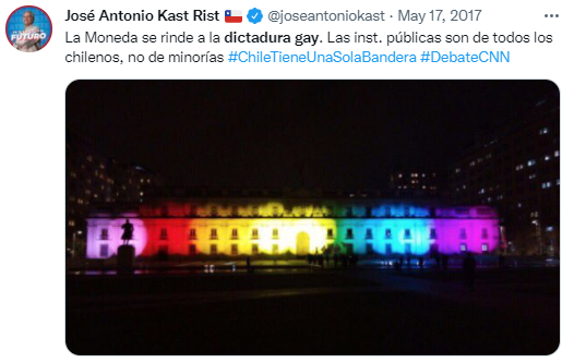 Durante todos estos años Kast no ha tomado ninguna posición en favor de las personas LGBTIQ+, ha mentido descaradamente en nuestra contra y se ha opuesto a todas las acciones que nos dan mayor igualdad en libertades y derechos ¿Hay algún motivo para creerle que se moderó?
