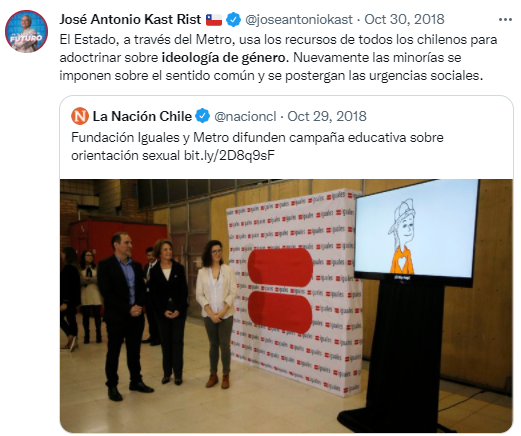 Más allá de una moderación impostada, @JoseAntonioKast ha tomado acciones que impactan en las personas LGBTIQ+ y definen con claridad quién es.