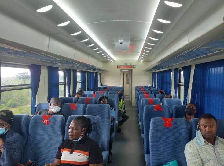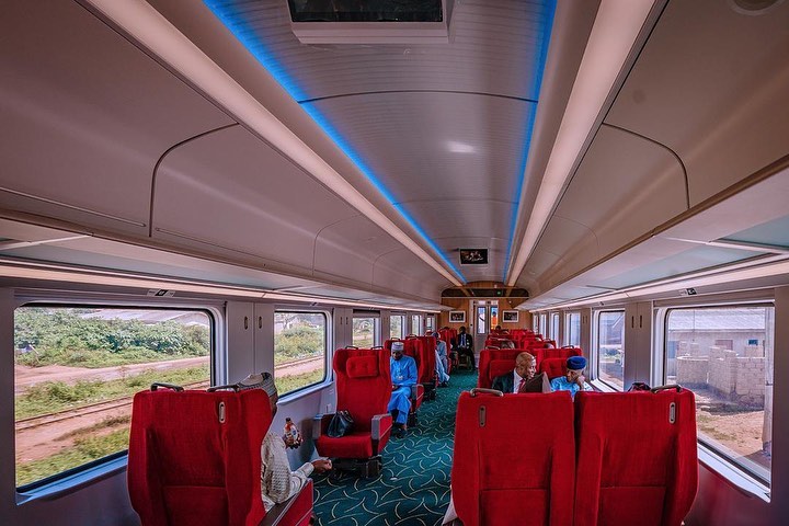 Lagos-Ibadan train has the capacity to travel at 150 km per hour. Its air conditioned coaches are outfitted with overhead TV screens. The toilets are clean. The window seats have charging ports.
