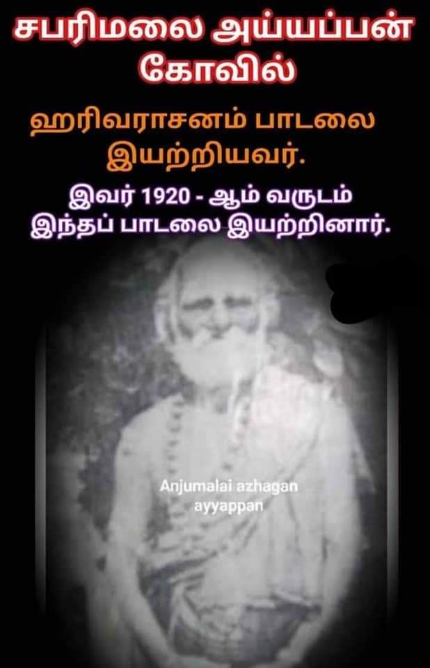 அதற்கு தேவராஜன் என்பவர் இசையமைத்தார். அந்த மெட்டில் அமைந்த ஹரிவராசனம் பாடல்தான் இன்றுவரை சபரிமேலையில் நடைசாத்தும் பாடலாக ஒலிக்கிறது.
