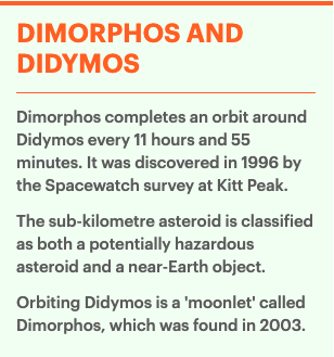 + Spacecraft Double Asteroid Redirection Test (DART) launched aboard a SpaceX Falcon 9 rocket to deliberately crash into asteroid Dimorphos at 15,000 mph