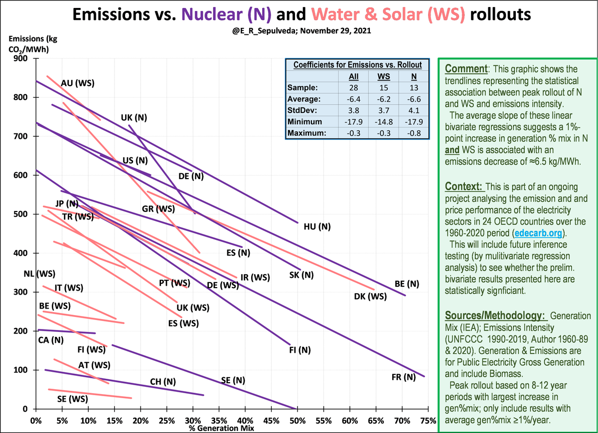 France reduced emissions intensity by 80% in 11 peak years of nuclear rollout of late-1970s. Went from AVG to very low emissions, maintaining AVG prices.