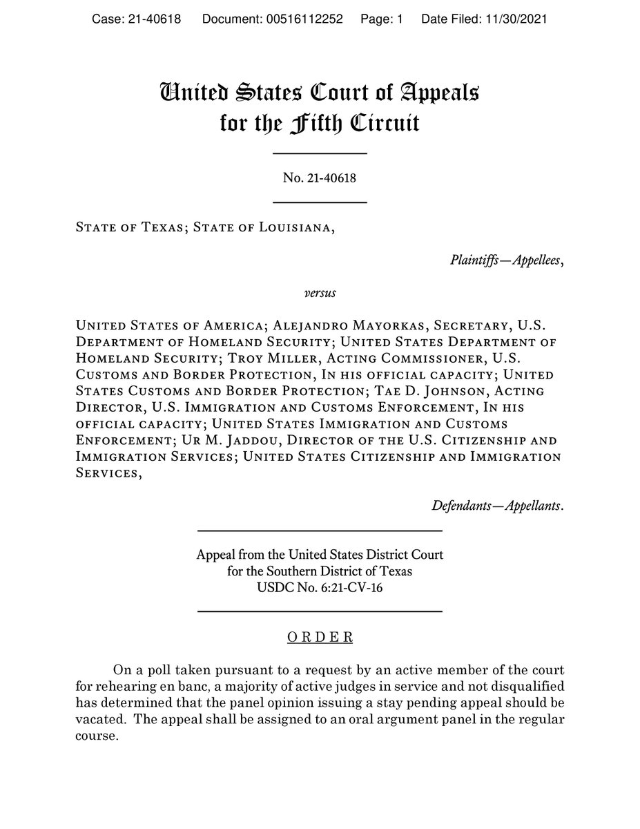 Update: "...a majority of active judges in service and not disqualified has determined that the panel opinion issuing a stay pending appeal should be vacated. The appeal shall be assigned to an oral argument panel in the regular course."