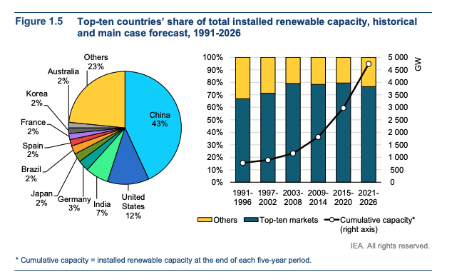 The massive boost in near-term renewable prospects is shown in IEA figure 1.2, with growth over the next 5yrs topping 1,800GW vs the 5yr forecast of 1,300GW last year (chart shld say "2020 and 2021")
