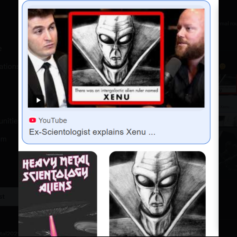 "75 million years ago, the alien tyrant Xenu brought billions of aliens to the planet Earth, known then as Teegeeack, and wiped them out by placing them next to volcanoes and detonating hydrogen bombs. ..👽🛸🤔