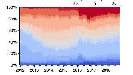 Examining political activity, we see that Reddit underwent a significant polarization event in 2016: activity in communities near the partisan extremes rose sharply around the 2016 US presidential election.