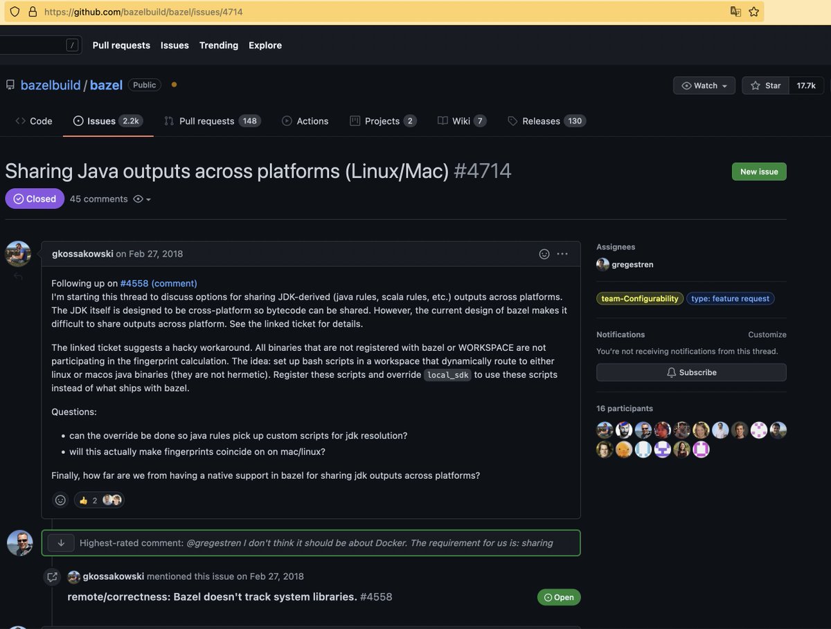 из прикольного, rule в Bazel может создать Persistent Worker — процесс который оборачивает какую-то штуку в демона, удобно для интеграции JVM/etc тулов в билд которые для перформанса лучше держать горячими, чем запускать на каждый чих