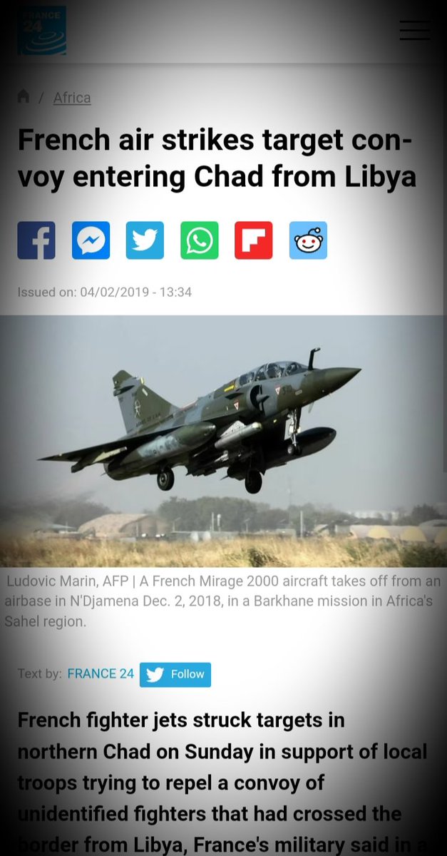 .deploys 6,000 soldiers, Squadrons of fighter jets, creates another military base in Mali. Deploys two Squadrons of Mirage fighters to Niger. Creates another air base in Ndjamena, Chad..this time deploying its deadliest combat aircaft, Rafale fighter jets. Then a drone base