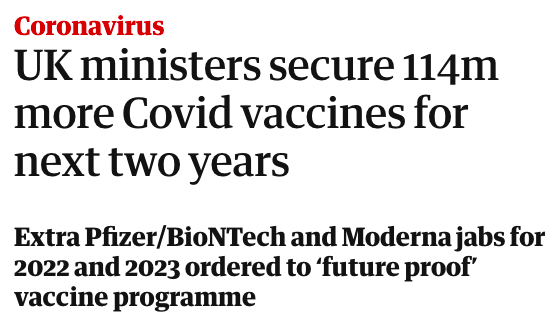 The UK - which, like the EU is BLOCKING wider production of vaccines globally - is preparing at home for a 4th booster… and a 5th…