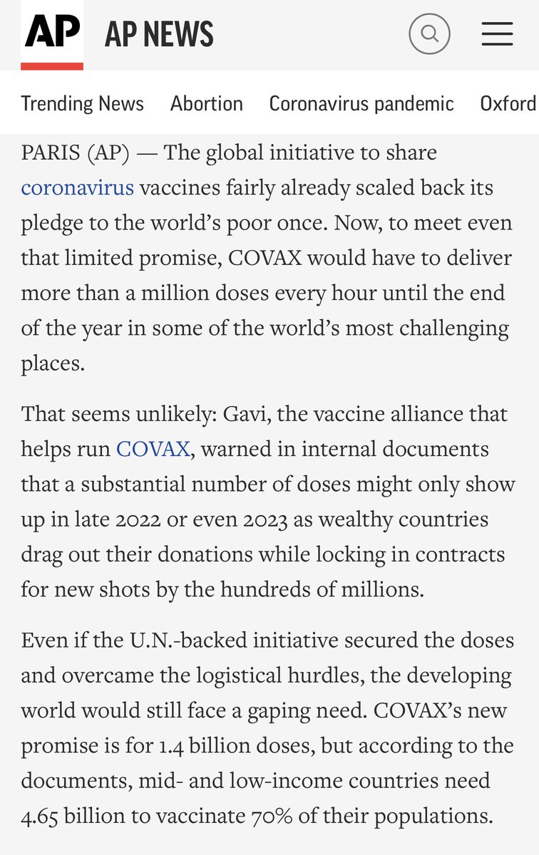 For those who think that rich countries sharing vaccine doses with poor ones will solve the problem: the math is not on your side. This has been clear for many months, at least…