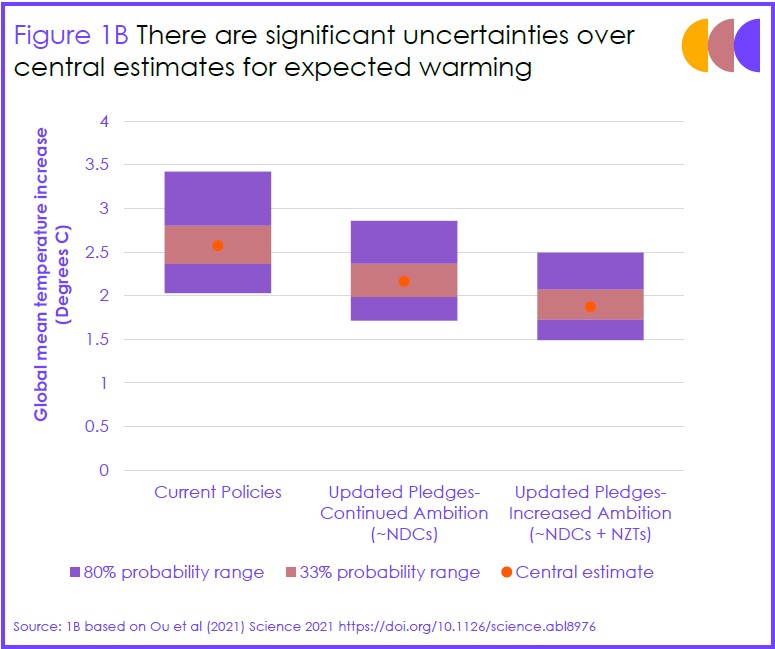 But only if *all* the ambition in the national 2030 targets is delivered and only if mid-century Net Zero targets are also delivered (and applied to all greenhouse gases not just CO2).