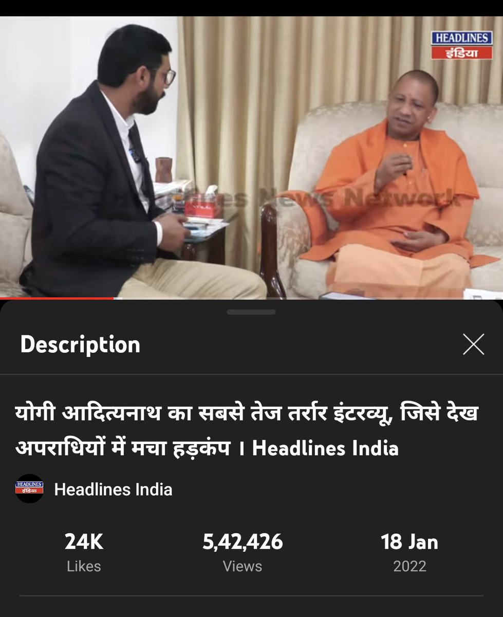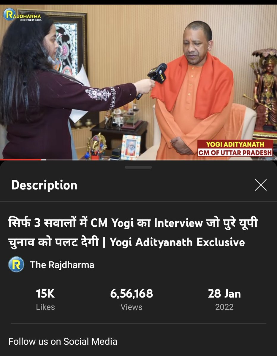 If anyone thinks that this ecosystem is fringe, here are some of their interviews with BJP's Yogi Adityanath in the run-up to the UP elections. Look at the reach & numbers of the interview video.