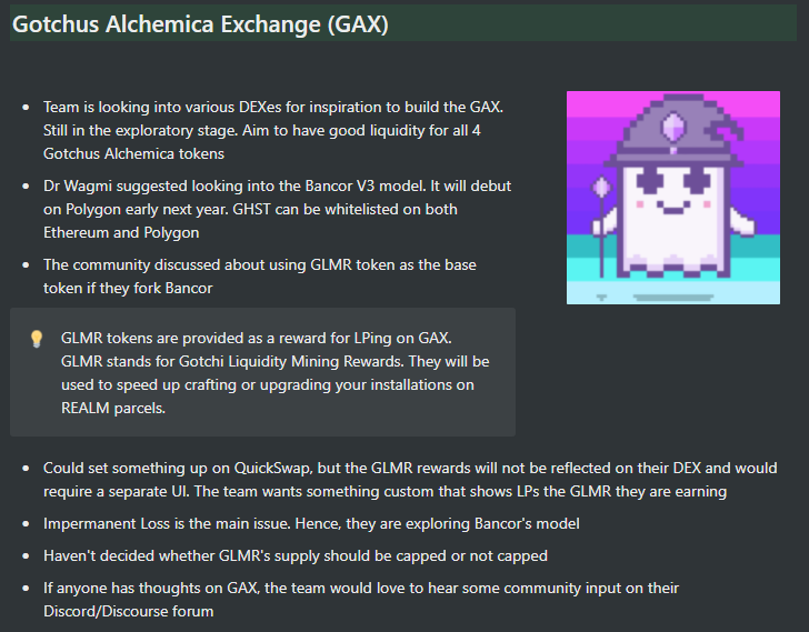 π» If anyone has thoughts on GAX, the team would love to hear some community input on their Discord/Discourse forum