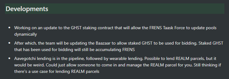 π» After which, the team will be updating the Baazaar to allow staked GHST to be used for bidding
