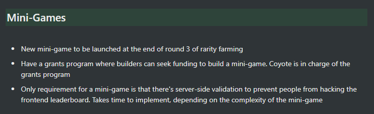 π» Have a grants program where builders can seek funding to build a mini-game. @ccoyotedev is in charge of the grants program