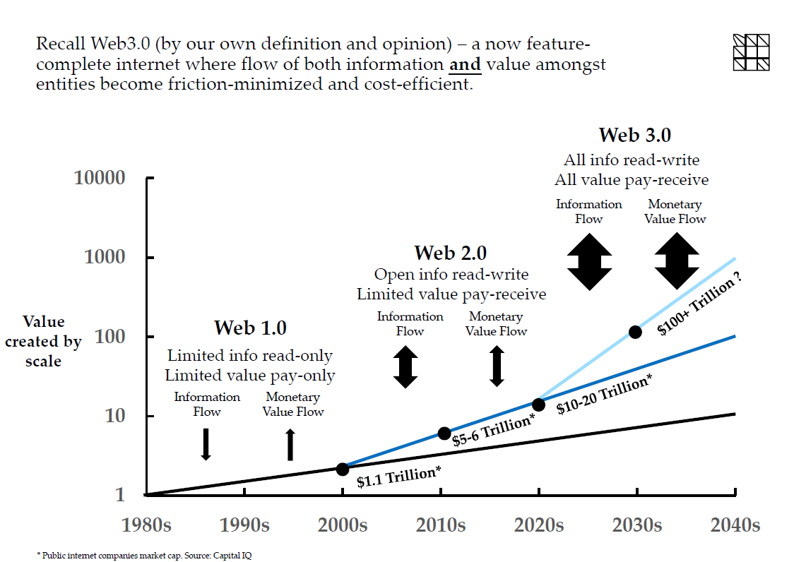 (1) A feature-complete Web3 to us is a friction-and-cost-minimized info & value transfer network, and while BTC is closer to early-adopter status, the broader Web3 with ~5-10 mm MAU is more like the internet in the mid-1990s.