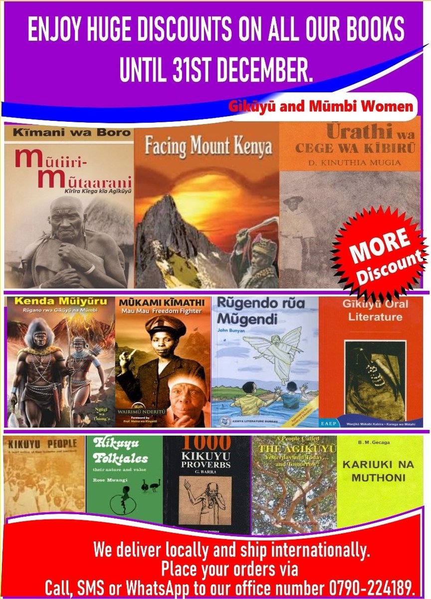 We have many more literature on Agìkūyū culture, African religion and Spirituality, African History. Enjoy discounts on all our books all the way to 31st December. We deliver locally and internationally.
