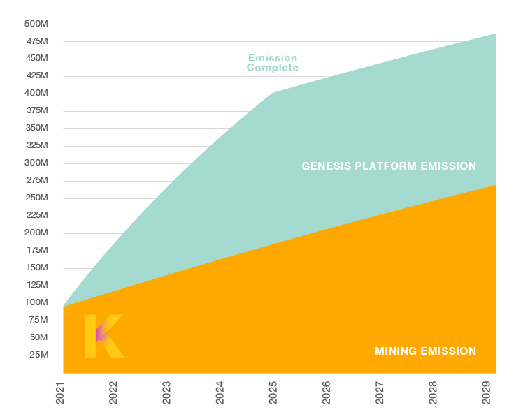 The overall emission of the Kadena platform happens through two processes: mining and release of allocated tokens. this can be compared to drilling for oil, mining for gold or minting new currency.