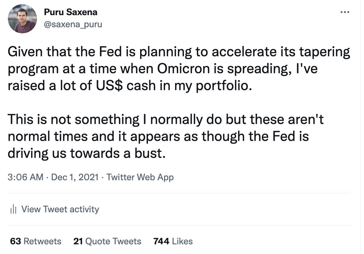 Now, a new COVID-variant is rocking risk assets. Why? The Fed is now tapering.