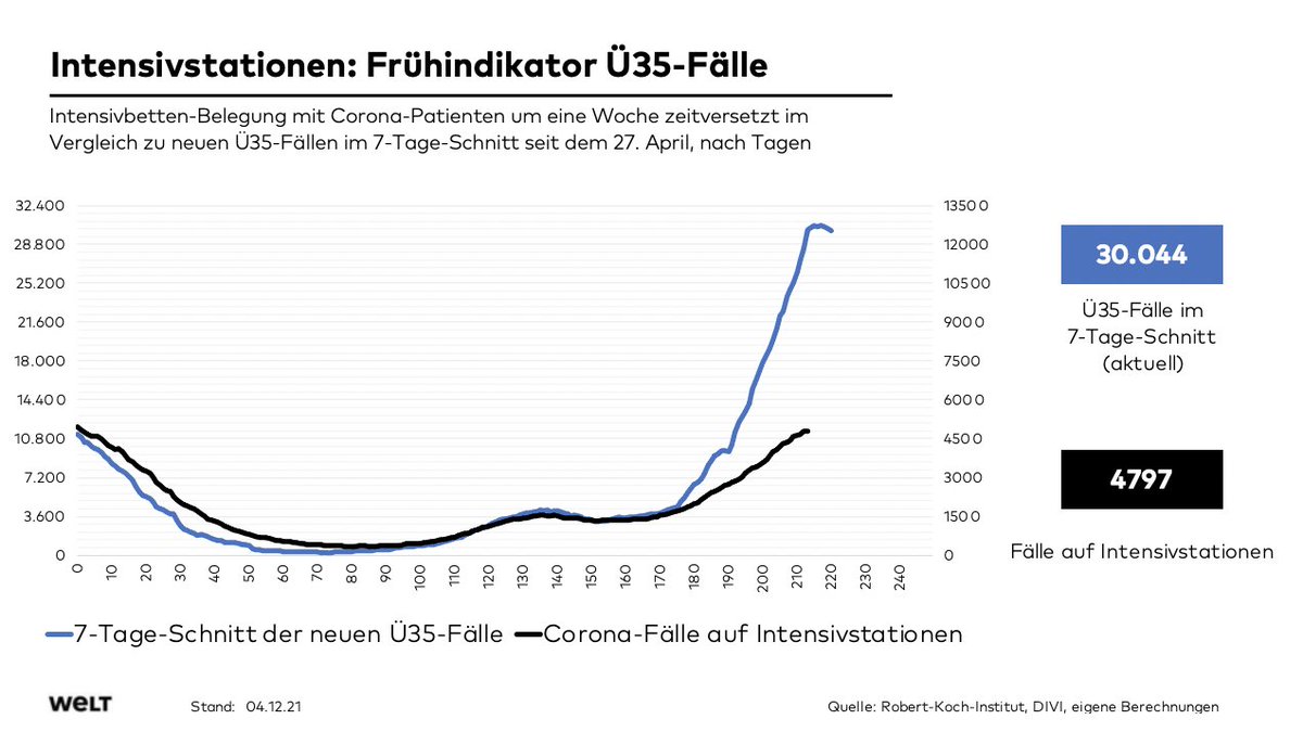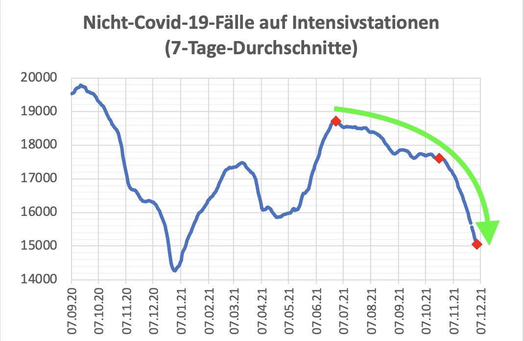 Und drittens: die Zahl der Nicht-Covid-19-Patienten auf Intensivstationen sinkt ebenfalls weiter. Zuletzt ist sie binnen 11 Tagen nochmals um 1000 ...
