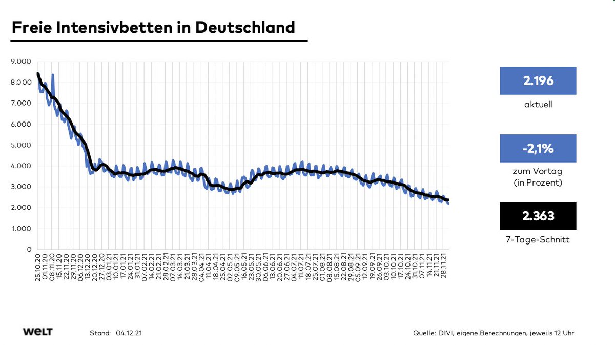 ... Intensivstationen sinkt weiter, der 7-Tage-Schnitt erreicht hier mit 2363 den niedrigsten Wert seit Pandemiebeginn.