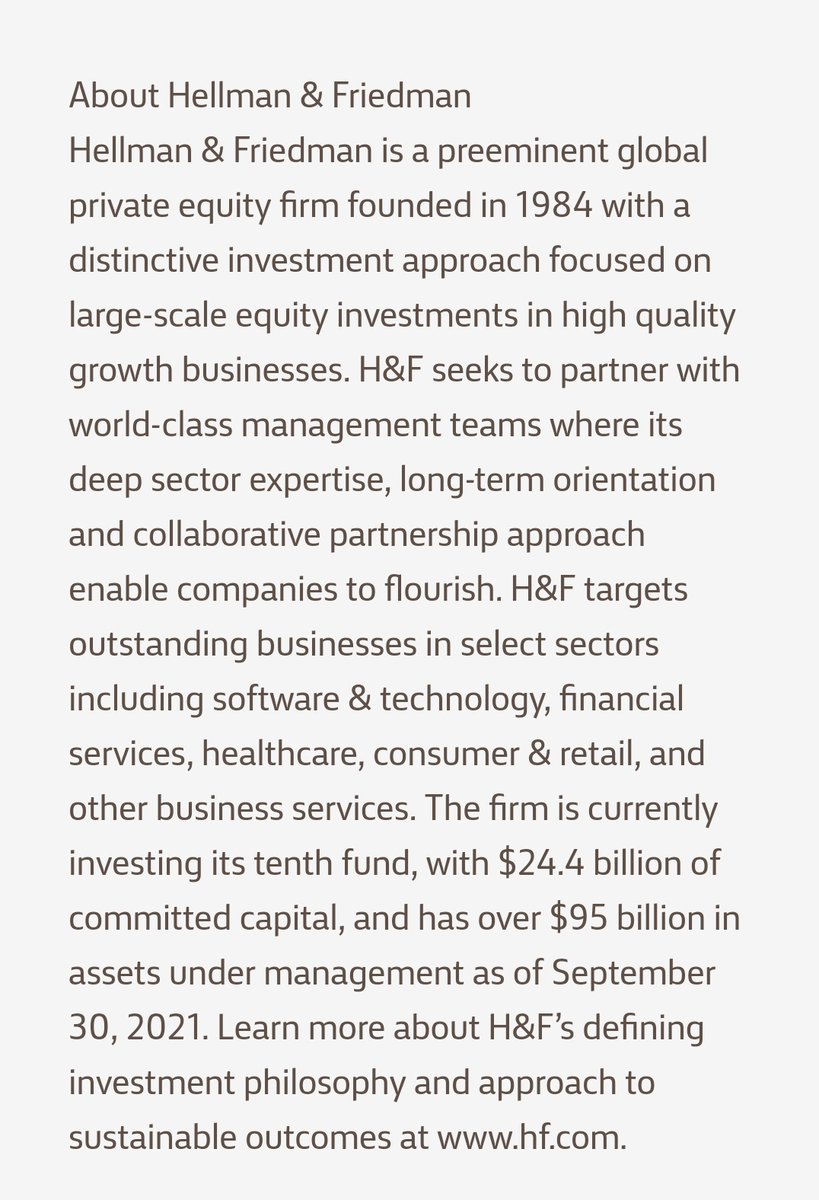 Of the $17bn required for the Antheahealth deal, only $7bn will be financed with equity from Hellman & Friedman and Bain Capital with Hellman & Friedman gettkbg the lion's share.