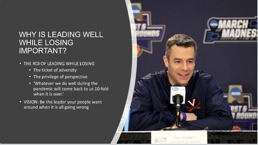 Leading well while losing can be a catalyst to greater ‘winning’ than was possible any other way. Leading well while losing has a MASSIVE ROI. #successfulStruggle 4/10