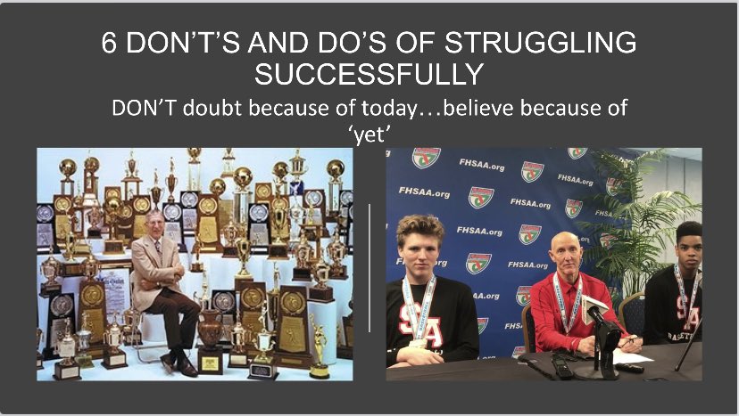 YET is a hope-filled word that fuels persistence. Wooden went 16 seasons at UCLA before first natty. My friend, Coach OConnell of @GoSAScots , went 34 seasons before 1st state chip. Use ‘yet’ to keep going. ‘Persistence is omnipotent’ - Calvin Coolidge. #successfulStruggle 8/10