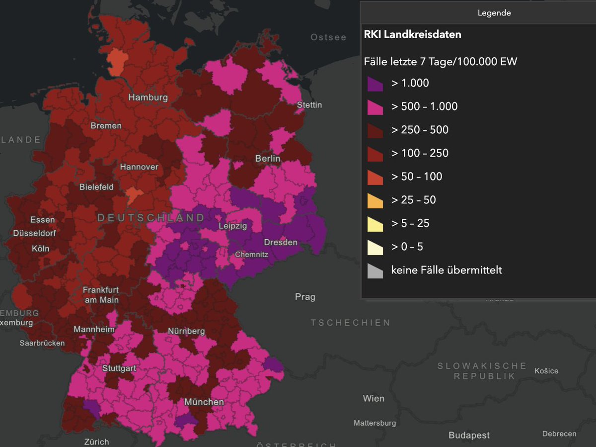 949 Fälle meldet das RKI für den Freistaat. Zum Vergleich: Eine Woche zuvor waren es 6627. Oder: Das einwohnerschwächere Sachsen-Anhalt meldet mehr als 3x so viele Fälle, nämlich 3009.