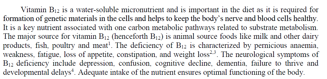 The major source is animal source foods like milk and other dairy products, fish, poultry and meat1. The deficiency of B12 is characterized by pernicious anaemia, weakness, fatigue, loss of appetite..