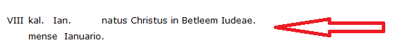 "VIII kal. Ian. natus Christus in Betleem Iudeae"