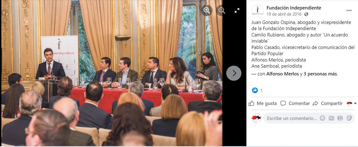 La relación de Casado con la familia Ospina y su Fundación no es reciente, en 2018 Pablo Casado asistió al homenaje póstumo a Mariano Ospina Hernández que organizó la Comunidad Iberoamericana y la Fundación Independiente en Madrid. larepublica.co/ocio/homenaje-…