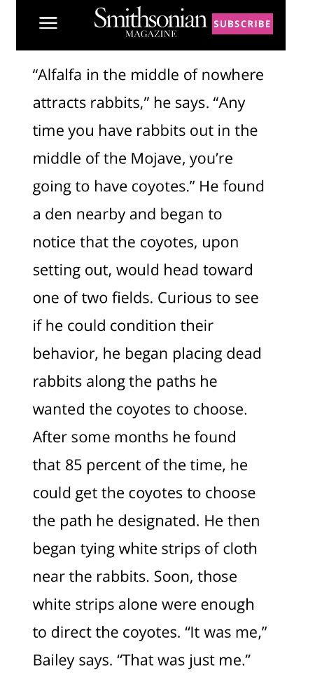 The idea that the CIA used to train animals to spy is pretty intriguing. Reading this article I stopped cold reading about rabbits and coyotes. Are the "rabbits" children and the "coyotes" pedophiles? Children used as bait? Blackmail? I think we know.