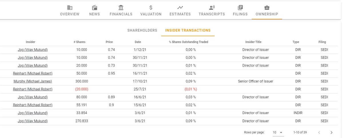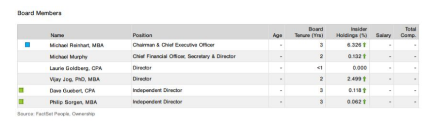 🔹9.1% de acciones. El CEO ( Mike Reinhart) posee un 6% de acciones.