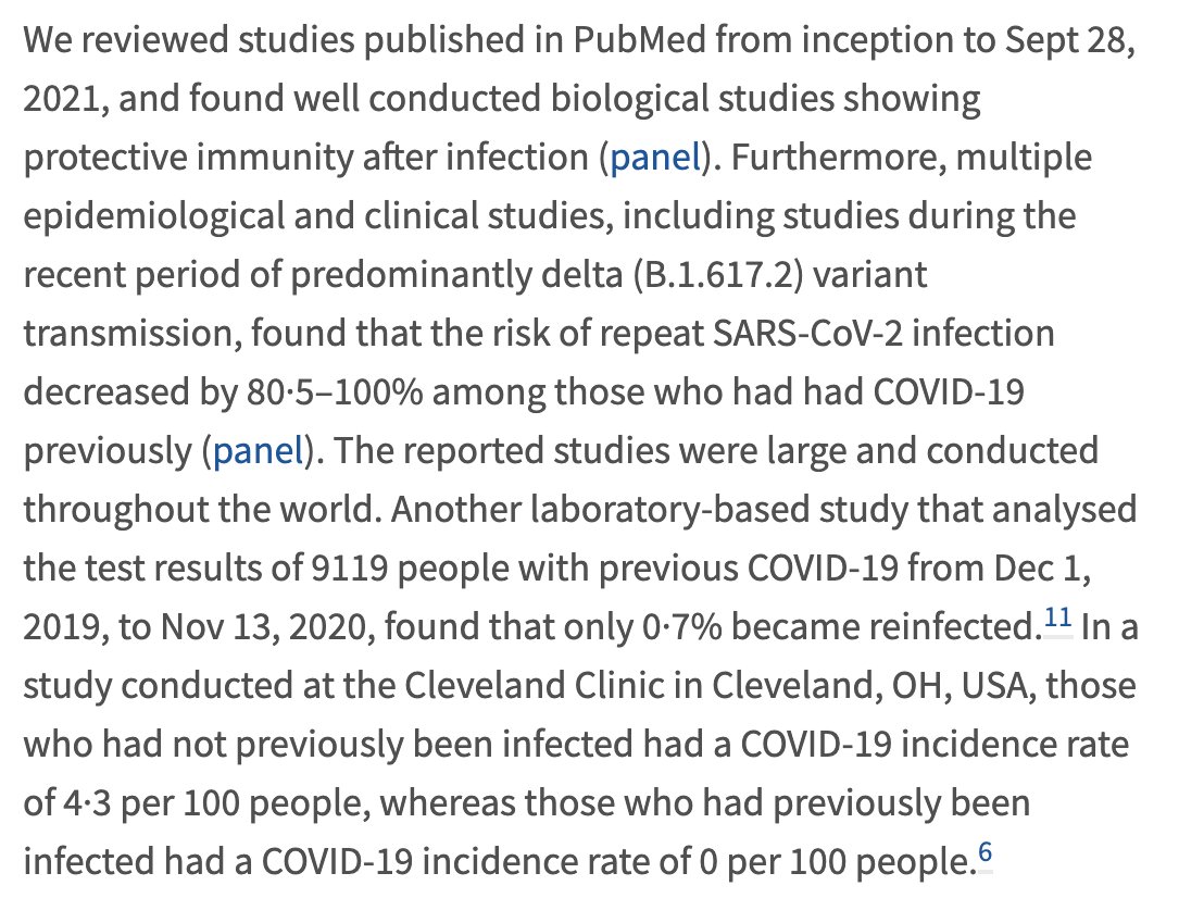 Summary of studies shows, again, that natural infection confers robust immunity against reinfection. It's time for US Public Health officials to acknowledge prior infection-induced immunity. Any mandates should count previously infected as "immune" along with fully vaccinated.