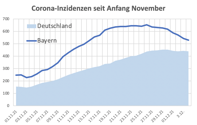 Auch die Inzidenz sinkt, von 442 auf 432, das ist der niedrigste Wert seit 12 Tagen.