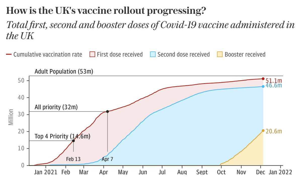 📈NHS statistics showed the weekly figure for booster jabs in UK has risen slightly (2.56M to 2.64M) they are some way off the government target, which pledged to deliver 3.5 million jabs a week