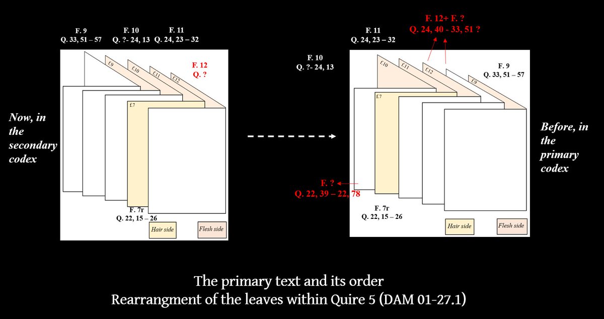 5/8. Reconstructing the quires however does not only prove that the Ṣanʿāʾ palimpsest was at first a codex, it also gives us new light about its text’s original structure, and especially about its particular order of the sūras