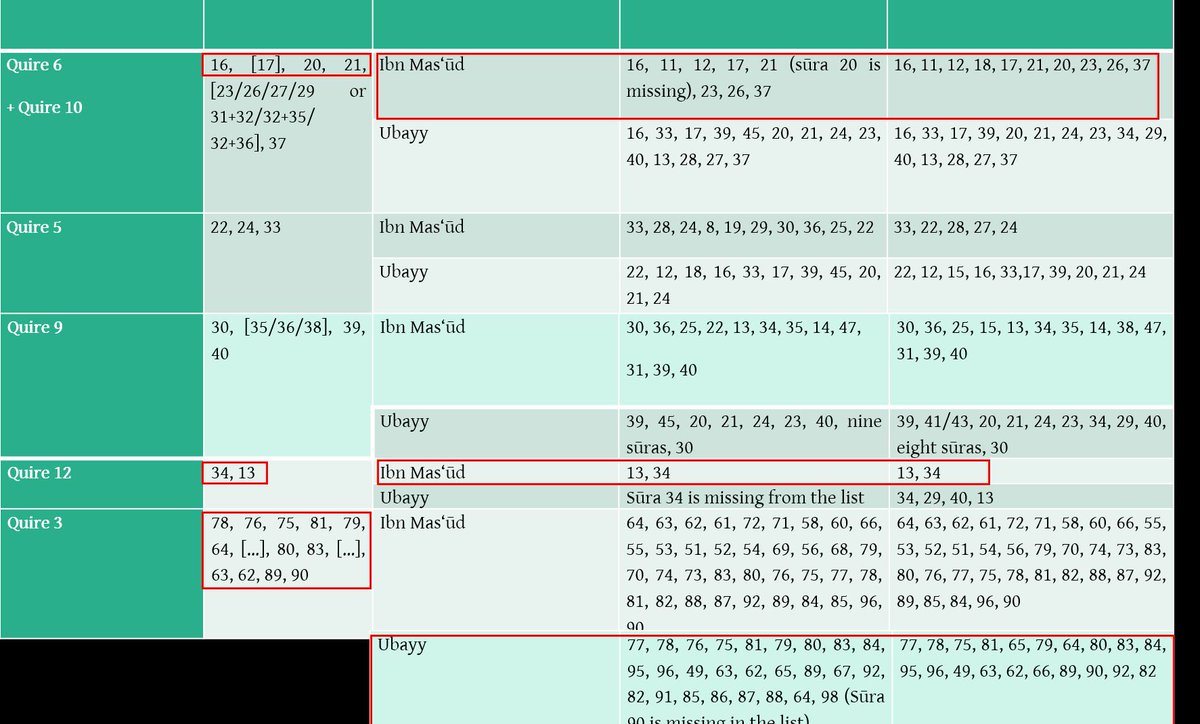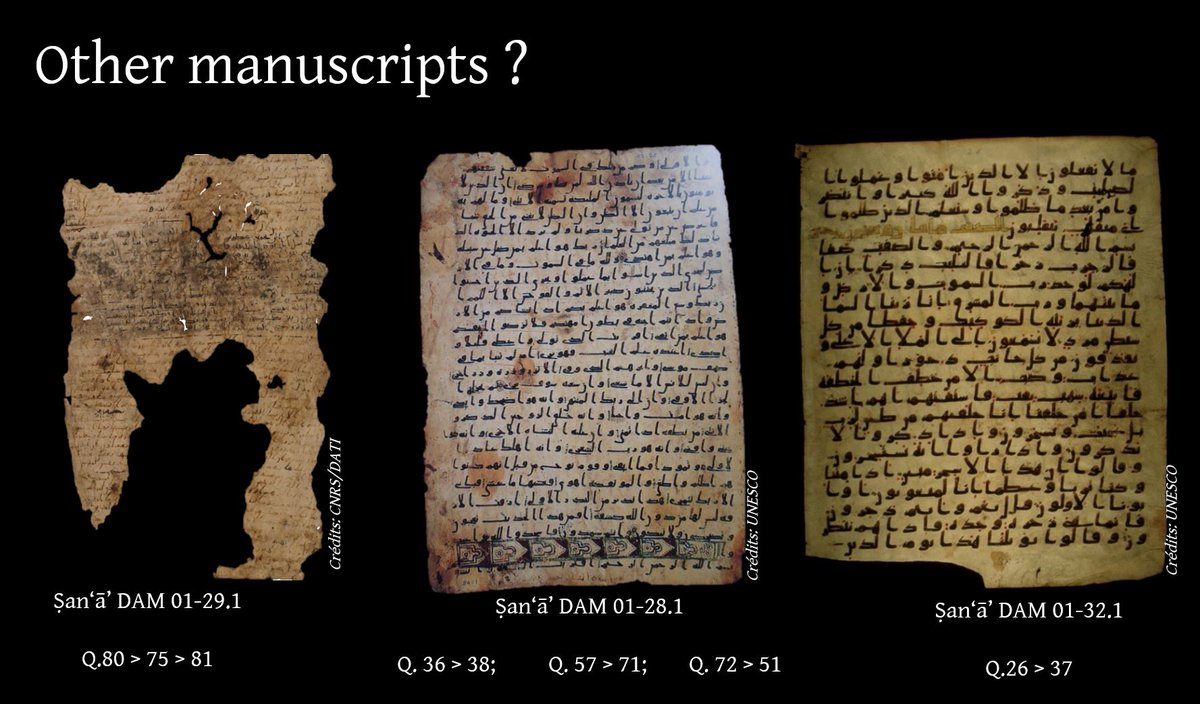 6/8. We have been able to restore several sequences of sūras (some are more hypothetical because many leaves are missing within a quire). They show similarities or convergences with Ibn Masʿūd and Ubayy’s codices, but also sequences in line with the ʿUthmanic text (like Q.10>11).