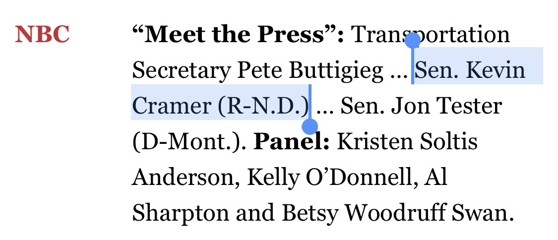 On Sunday @chucktodd is using Meet the Press to host Kevin Cramer—who appeared on MTP a year ago to deny that Biden won the election (11/22/20)