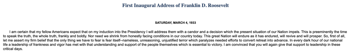 An earlier Dem hero put it best in March 1933. Not just the famous "fear itself" line but the words around it. They still resonate.