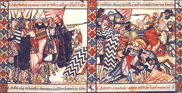 2/ Trois siècles après, l’idéologie de croisade contribue à penser la conquête de la péninsule Ibérique comme la reprise de territoires qui appartiendraient de droit – idée importante à l’époque, qui occupe une place clé dans l'imaginaire féodal – aux chrétiens